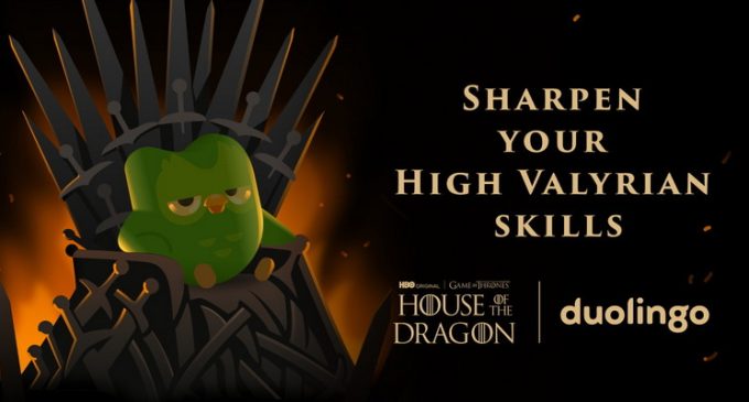Nền tảng học ngôn ngữ online Duolingo (Mỹ) đã công bố hợp tác chính thức với HBO Max cho phim “House of the Dragon” do HBO sản xuất. Phần tiền truyện của “Game of Thrones” (Trò Chơi Vương Quyền) dự kiến lên sóng vào ngày 21-8-2022 trên HBO Max. Để giúp người hâm mộ sẵn sàng đón xem “House of the Dragon”, Duolingo đã ra mắt bản cập nhật khóa học tiếng High Valyrian, một ngôn ngữ hư cấu trong phim, với hơn 150 từ và hơn 700 câu hội thoại mới.