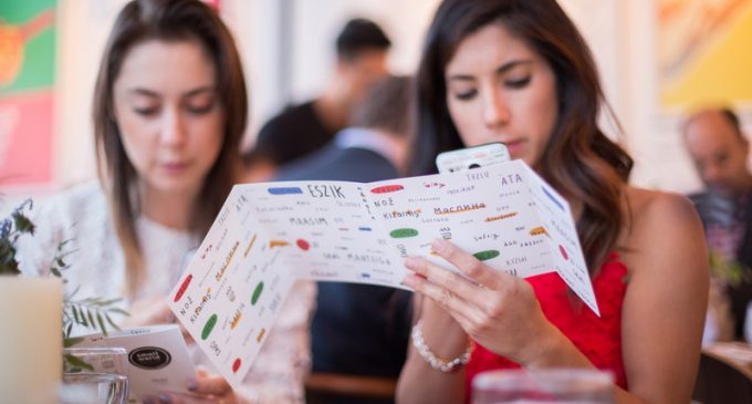 Hai cô gái đang dùng ứng dụng di động dịch thực đơn của một nhà hàng ở nước ngoài. (Ảnh: Whatever).