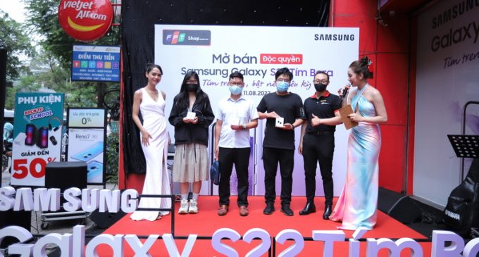 Vào lúc 9 giờ sáng ngày 11-8-2022, hệ thống cửa hàng bán lẻ công nghệ FPT Shop đã bắt đầu mở bán mẫu smartphone Samsung Galaxy S22 Bora Purple phiên bản độc quyền kèm ưu đãi đến 6.290.000 đồng tại 2 cửa hàng số 202 Nguyễn Thị Minh Khai (Q.3, TP.HCM) và 45 Thái Hà (Đống Đa, Hà Nội). Đặc biệt, 22 khách hàng may mắn nhất còn được giảm ngay 50% giá khi chọn mua sản phẩm tại hệ thống nhân ngày mở bán. Đồng thời, tất cả khách hàng tham gia sự kiện còn có cơ hội nhận tai nghe Galaxy Buds2 trị giá 2.990.000 đồng thông qua chương trình quay số may mắn.