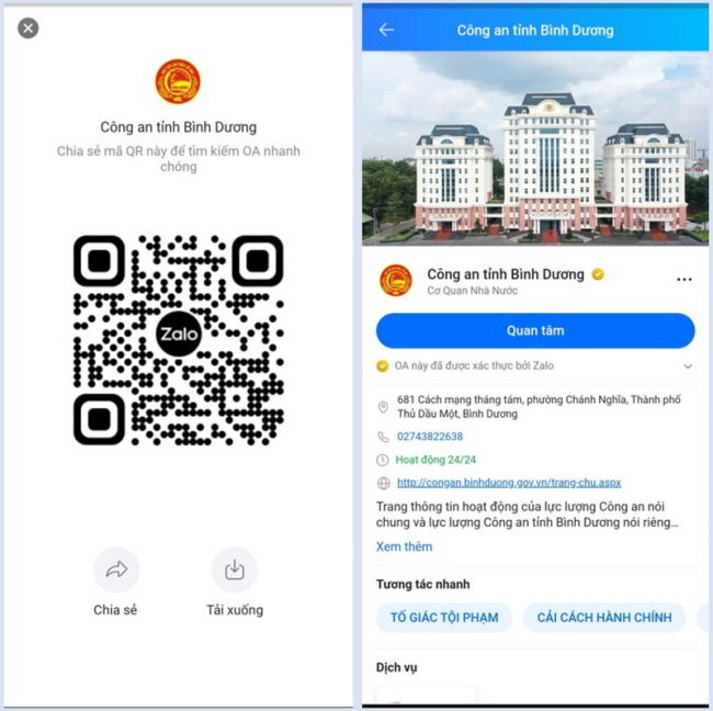 Trên Zalo, người dùng tìm kiếm “Công an tỉnh Bình Dương” hoặc quét mã QR (bên trên) để theo dõi và nhận tin tức chính thống của Công an tỉnh Bình Dương.