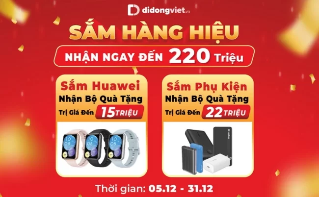 Bước sang tháng 12-2022, hệ thống bán lẻ hàng công nghệ Di Động Việt triển khai chương trình khuyến mại “Sắm hàng hiệu nhận ngay đến 220 triệu” từ ngày 5 đến 31-12-2022 nhằm “đón sóng” tiêu dùng cuối năm.