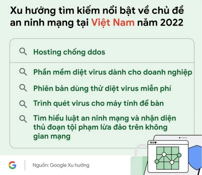 Xu hướng tìm kiếm nổi bật về chủ đề an ninh mạng tại Việt Nam năm 2022.