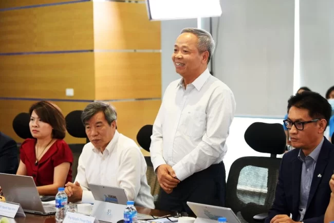 Ông Nguyễn Trung Chính, Chủ tịch HĐQT Tập đoàn CMC, Chủ tịch Hội đồng Trường Đại học CMC, tại buổi làm việc của đoàn công tác của Bộ GD&ĐT do Bộ trưởng Nguyễn Kim Sơn làm trưởng đoàn.
