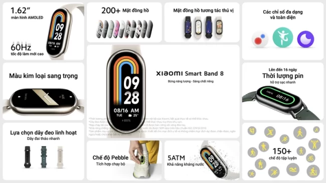 Xiaomi ngày 27-9-2023 đã giới thiệu đến người dùng Việt Nam sản phẩm vòng tay thể thao thông minh Xiaomi Smart Band 8. Thiết bị có hiệu năng mạnh mẽ, hỗ trợ nhiều chế độ tập luyện, tiết kiệm năng lượng và bền bỉ.